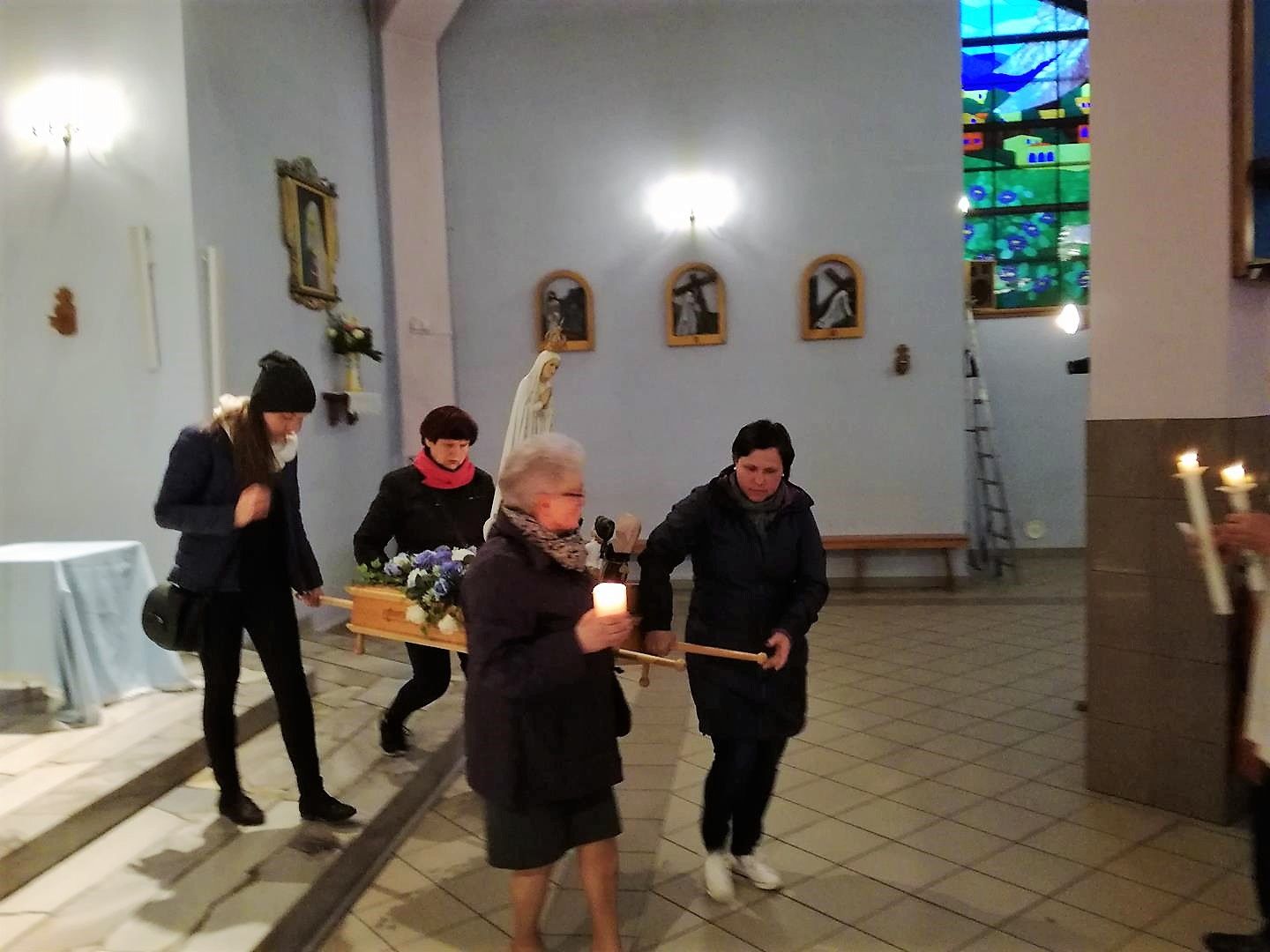 13 Maja 2017 roku obchodziliśmy 100-tną rocznicę objawień Matki Bożej Fatimskiej. Także w tym dniu zostali świętymi: Hiacynta i Franciszek. W naszej Parafii o godz. 20-tej odbyło się nabożeństwo różańcowe do Matki Bożej Fatimskiej i procesja z figurą Matki Bożej Fatimskiej i pastuszkami.
